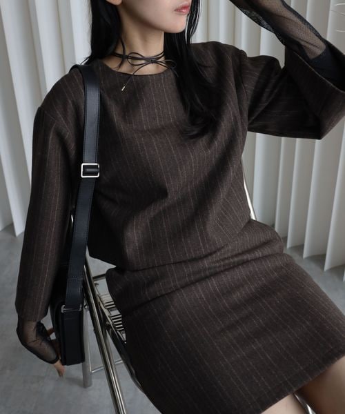 【ストライプFウールノーカラージャケット】セットアップ可能