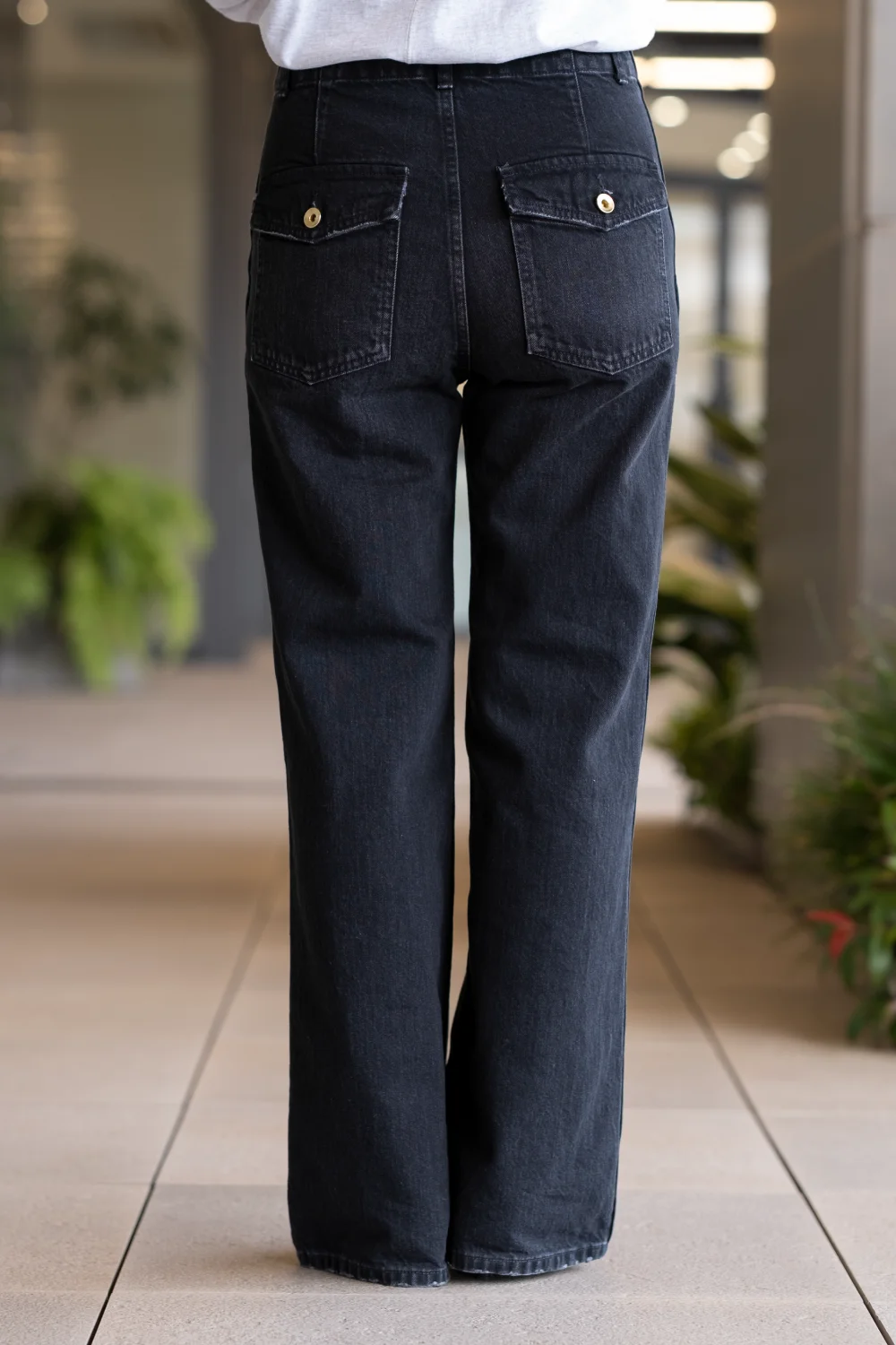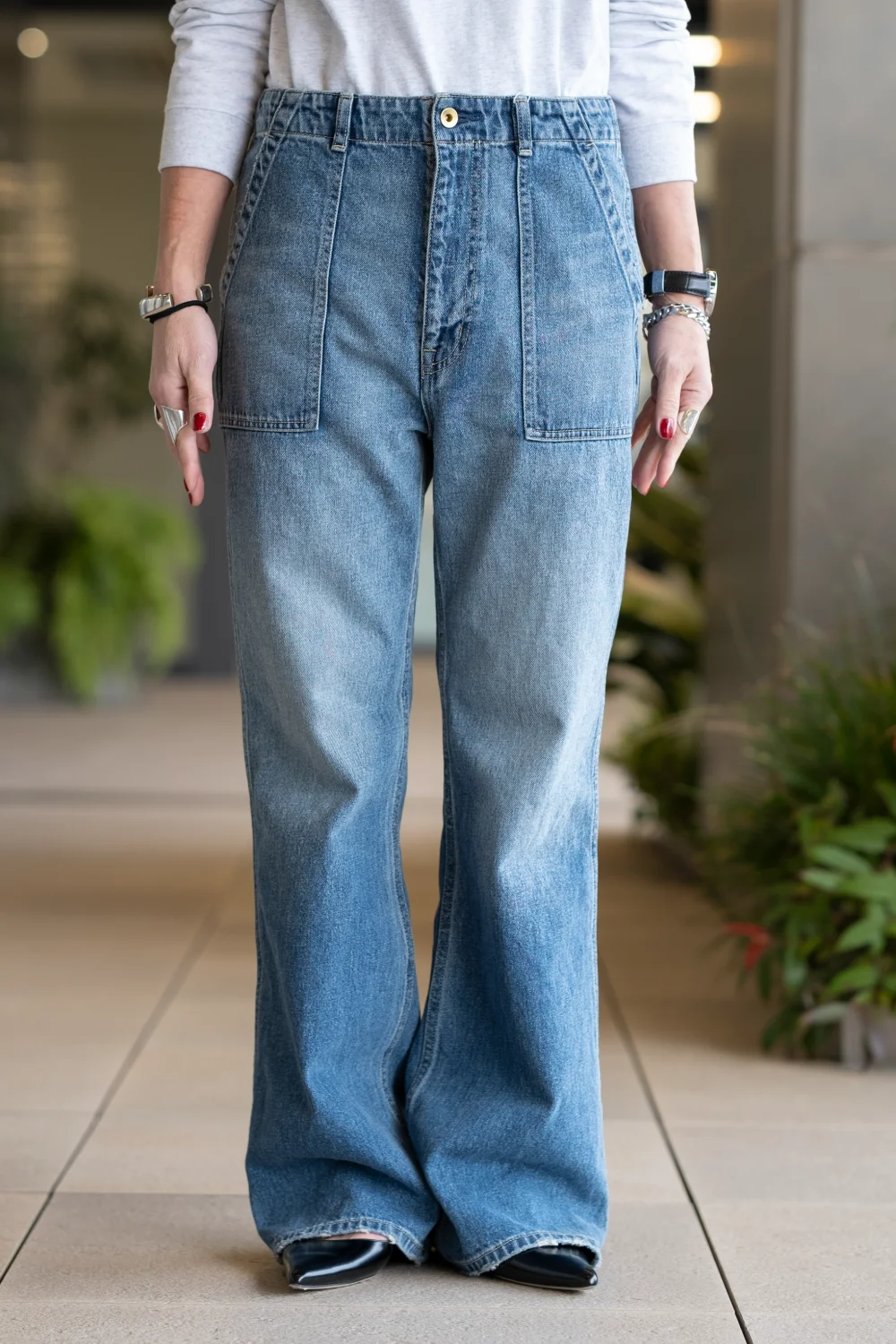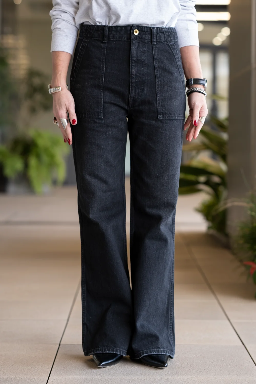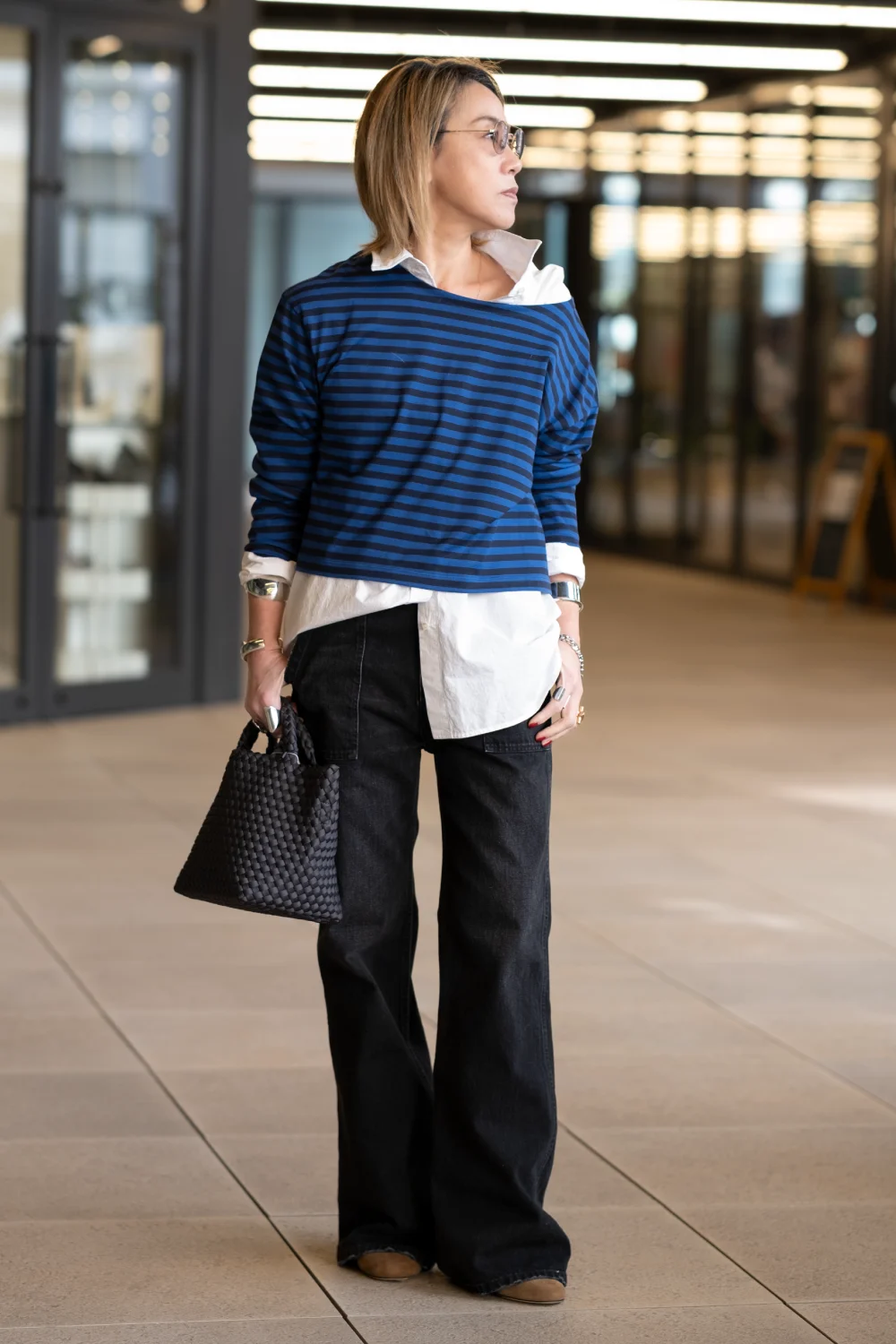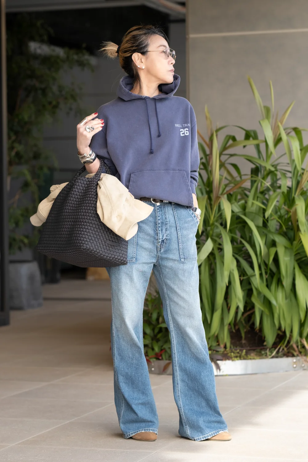 11OZのデニム生地使用。オープンエンド紡績機でつくられた糸を使用した生地は、空気を含みガサ感のあるのが特徴です。60~70年代に多く見られた素材感で、経年変化を比較的早く楽しんで頂ける素材です。デザインはベイカーパンツのデイテールを施した、セミフレアーシルエットデニム。ヒップから腰まわりをスッキリタイトに仕上げております。