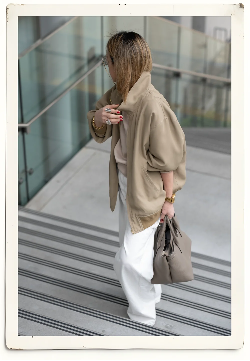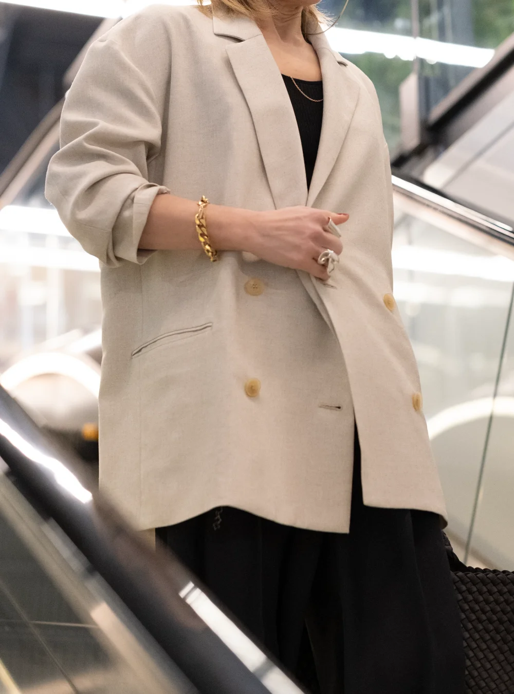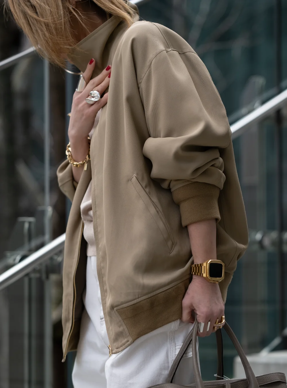 肌に馴染むニュアンスカラーをラフに羽織る贅沢。身体を包み込む計算されたボリュームシルエットは、着ていることを忘れるほどライトな質感。気負わないのに品がある、大人のための最旬カジュアルを体現。襟を立てボリュームを出し、ワイドデニムで重心を下げた、ハンサムなスタイリングに。
