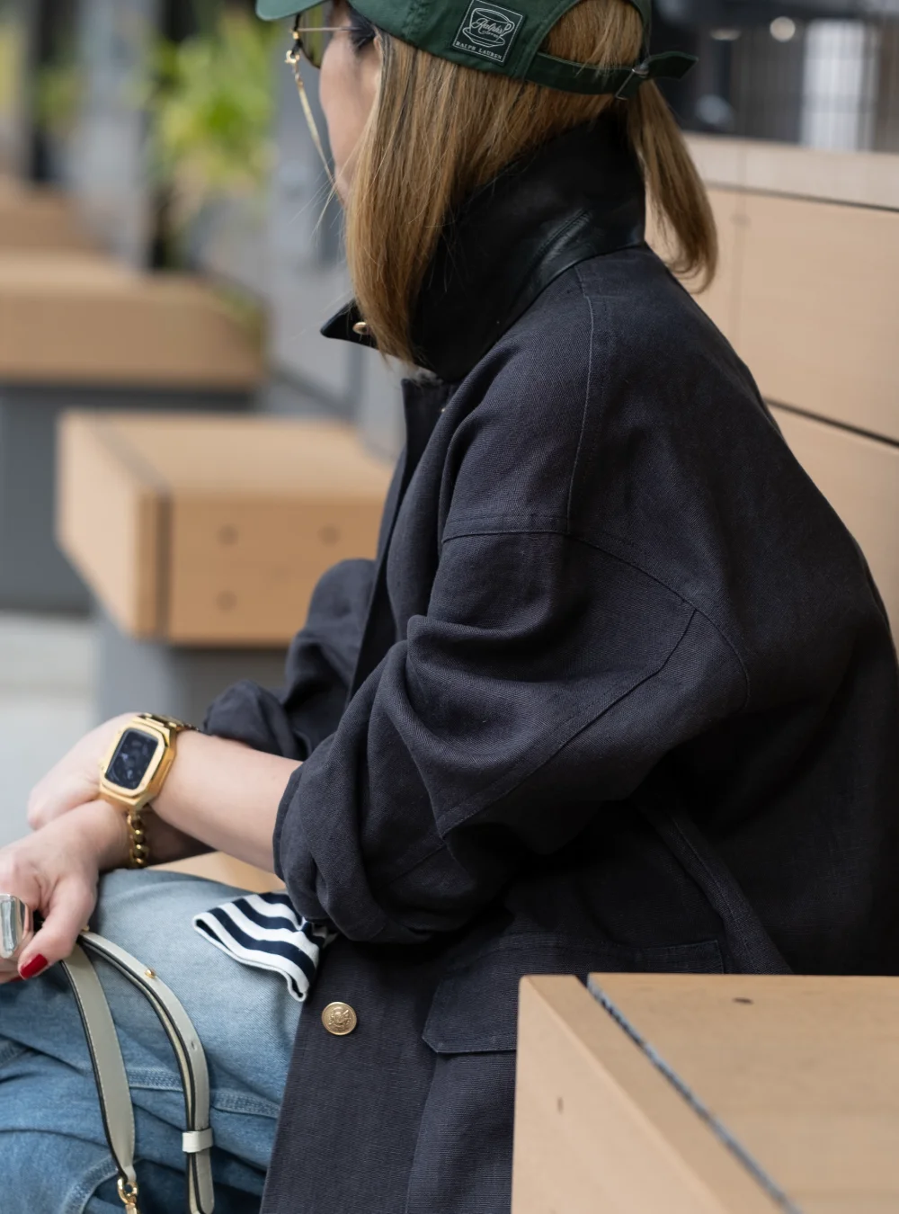 シックなダークトーンに、あえてデニムやキャップを合わせる『崩し』の美学。ヘンプならではの軽やかな着心地が、アクティブな一日をサポート。ラフさと品格が同居する、大人のためのニュースタンダードなスタリングに。キャップやオーバーオール、白のバッグを合わせ、ワークウェアとしての無骨さを、都会的な小物で「クリーンに崩す」スタイルを提案します。