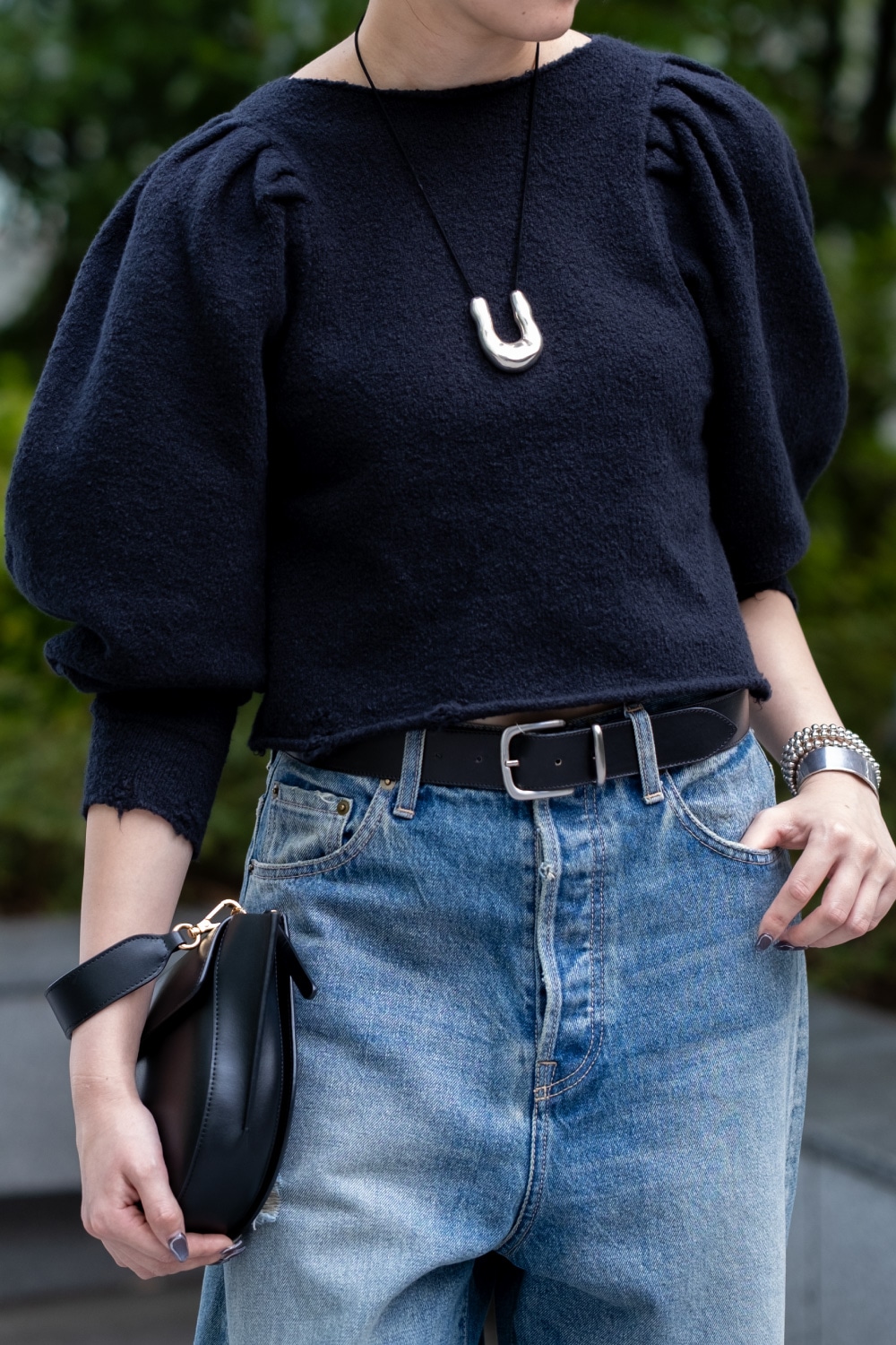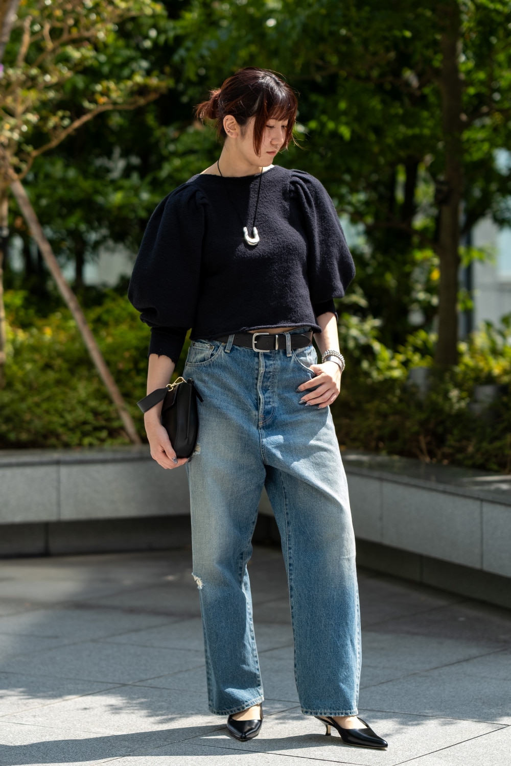 今年春から仲間入りしたとは思えないほど、BRILLをしっかり着こなしてます!定番のデニムに新作の黒パフスリーブを合わせて、程よい緊張感と抜け感を演出。ウェストをベルトマークして、ラフさの中にもスタイルアップを意識。さらにパンプスで仕上げれば、女性らしさと都会的ムードが一気に引き立ちます。新しい風を運びながら、これからの活躍がますます楽しみになるコーディネートです。