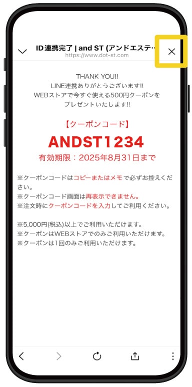 クーポンは店舗もしくは公式オンラインストアand STのどちらかでご利用いただけます。