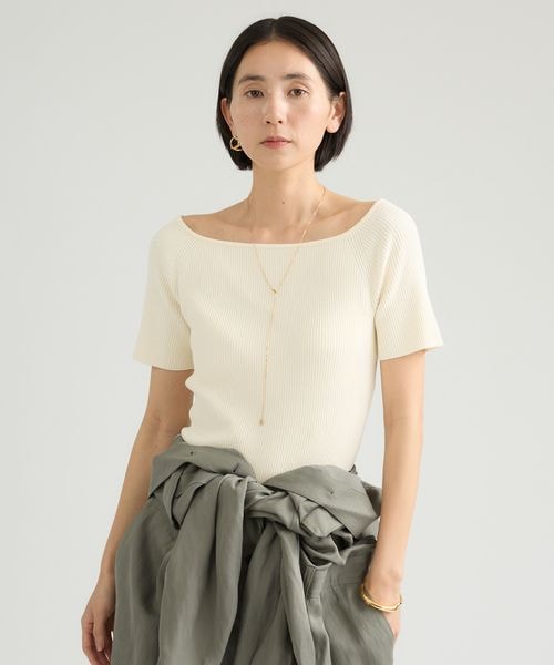 【新色】【NICENICE MOMENT】オープンショルダーハーフスリーブニットトップス
