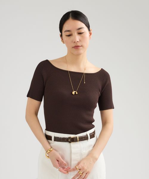 【新色予約】【NICENICE MOMENT】オープンショルダーハーフスリーブニットトップス