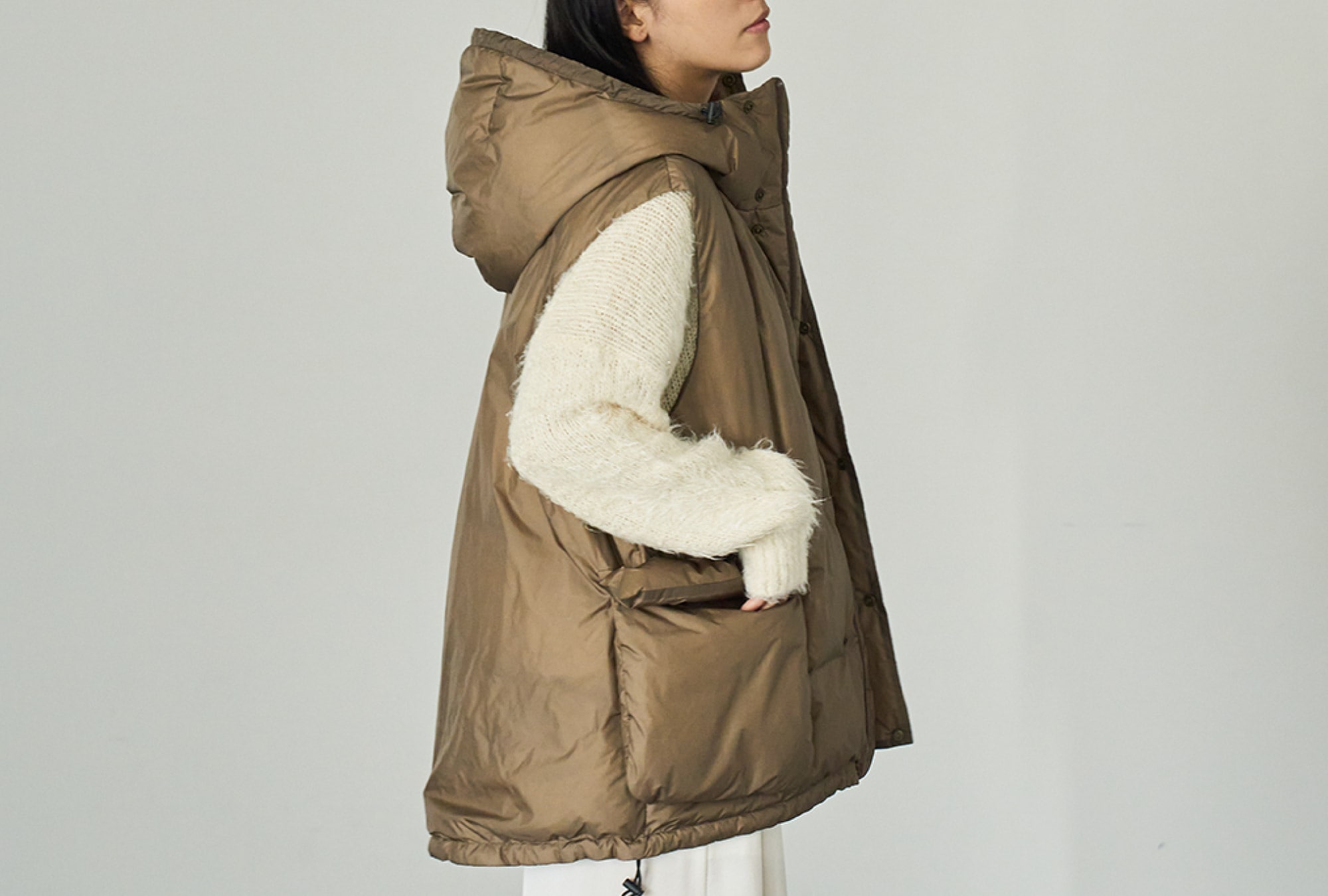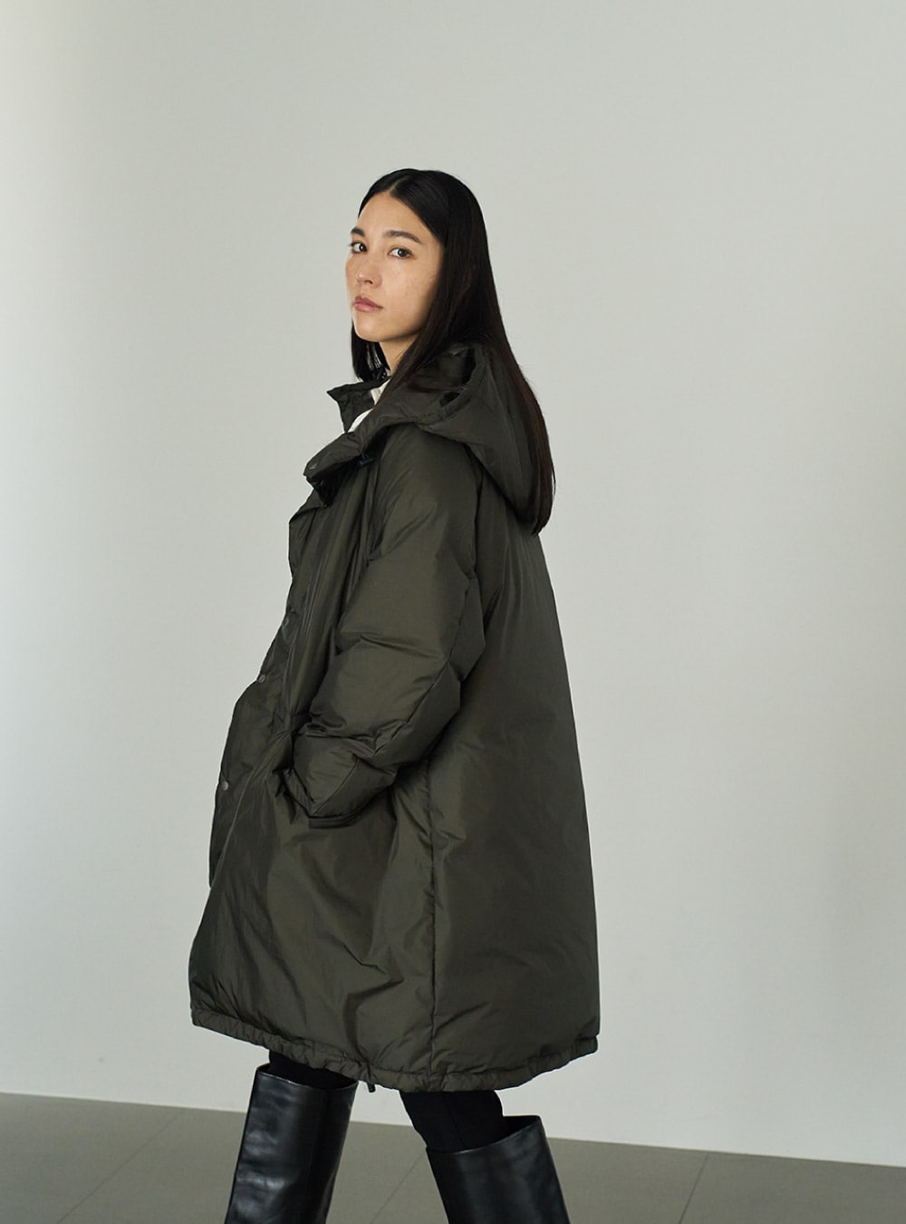 スタイリッシュな大人の女性が着るダウン。そんな思いから誕生したコラボレーション。ダウンでもスタイルが良く見えるよう徹底的にシルエットを追求。着丈に合わせてポケット位置を調整し、より美しく見えるバランスに。古着のような加工感を持つREMI RELIEFのダウンに、Chaosのモードを掛け合わせた特別な一着。