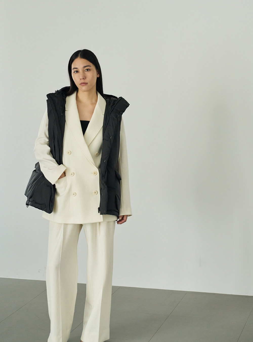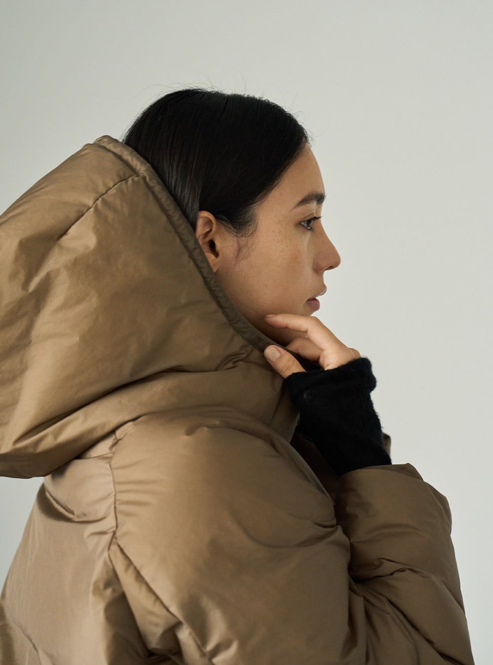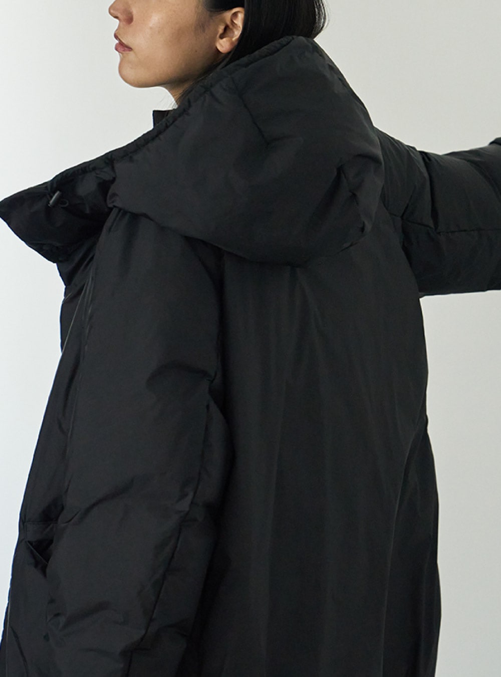 ショート同様に丈をやや長く変更。長すぎるとメンズライクになりすぎるため、絶妙なバランスに設定。今年はフード仕様にアップデート