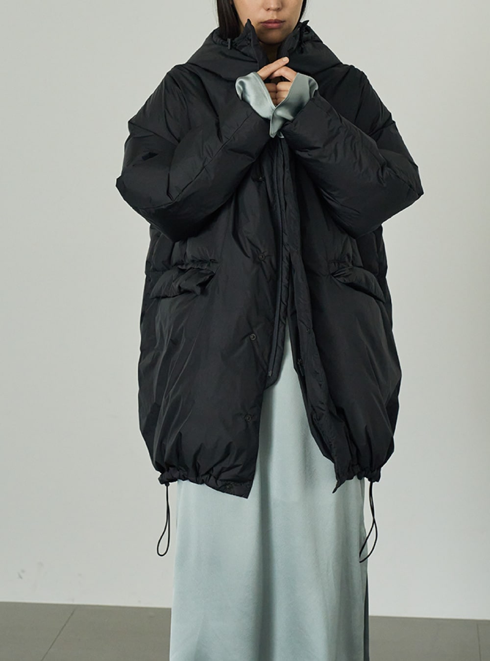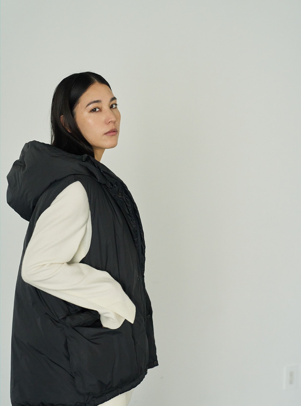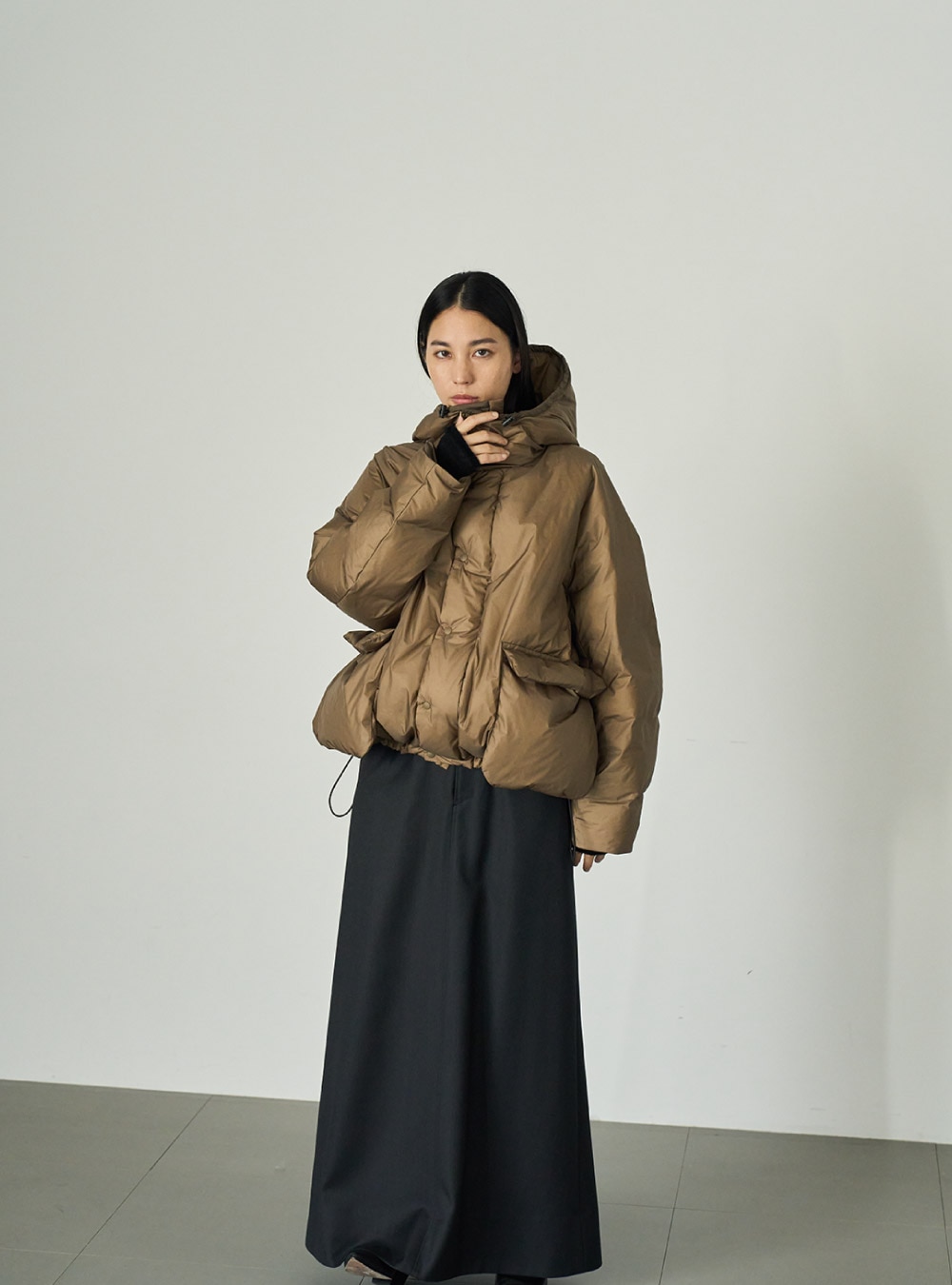 ショート同様に丈をやや長く変更。長すぎるとメンズライクになりすぎるため、絶妙なバランスに設定。今年はフード仕様にアップデート