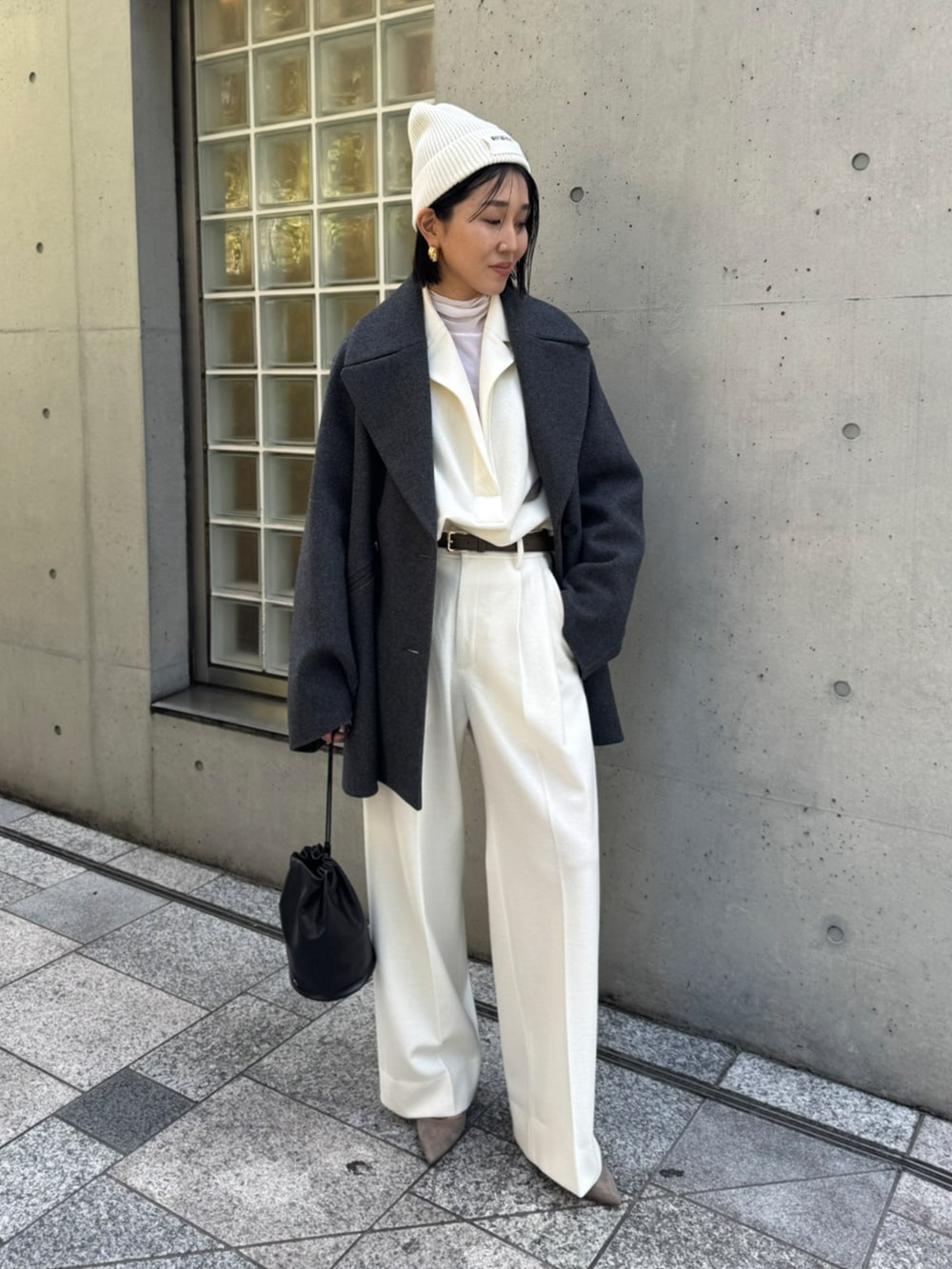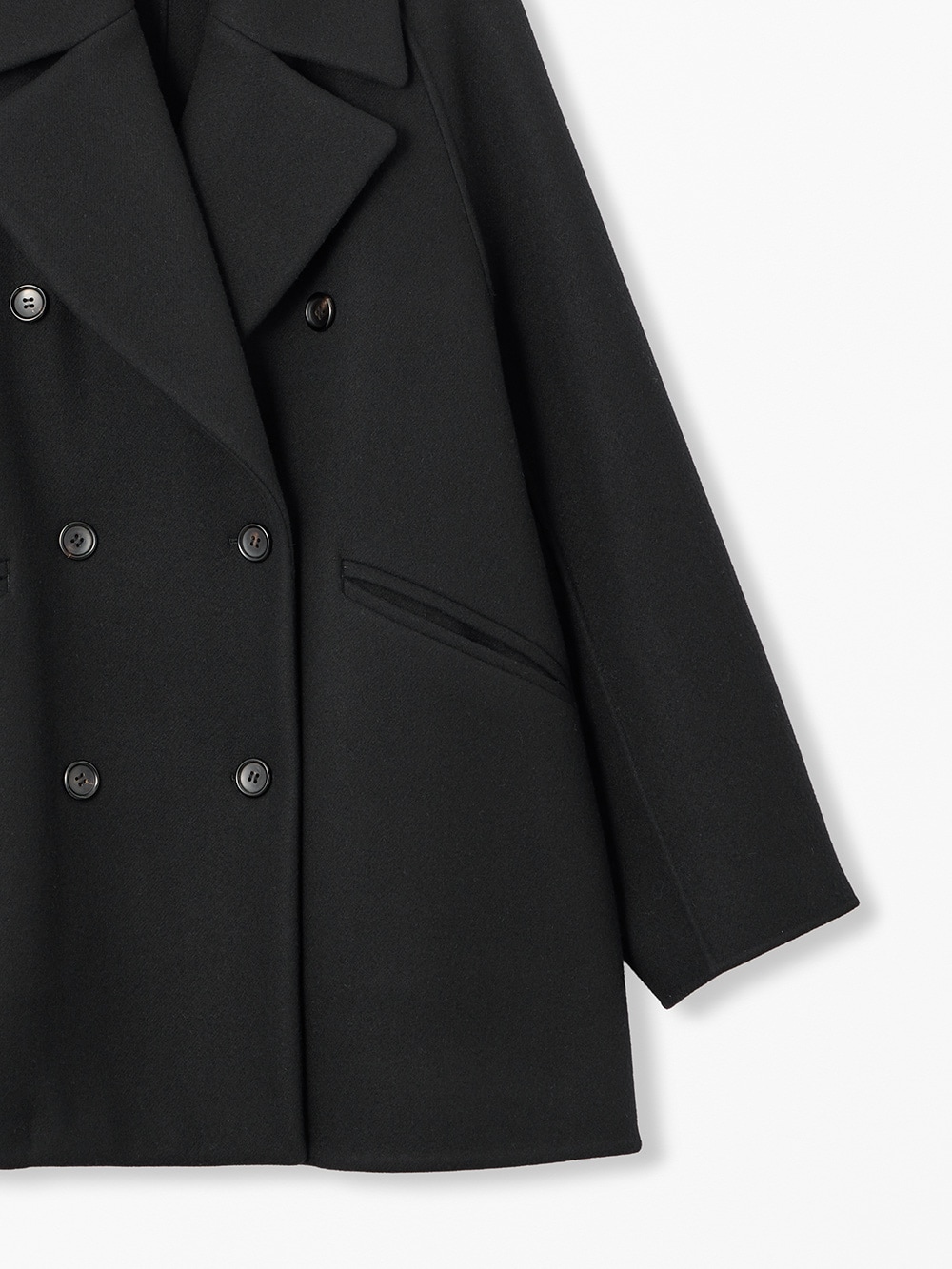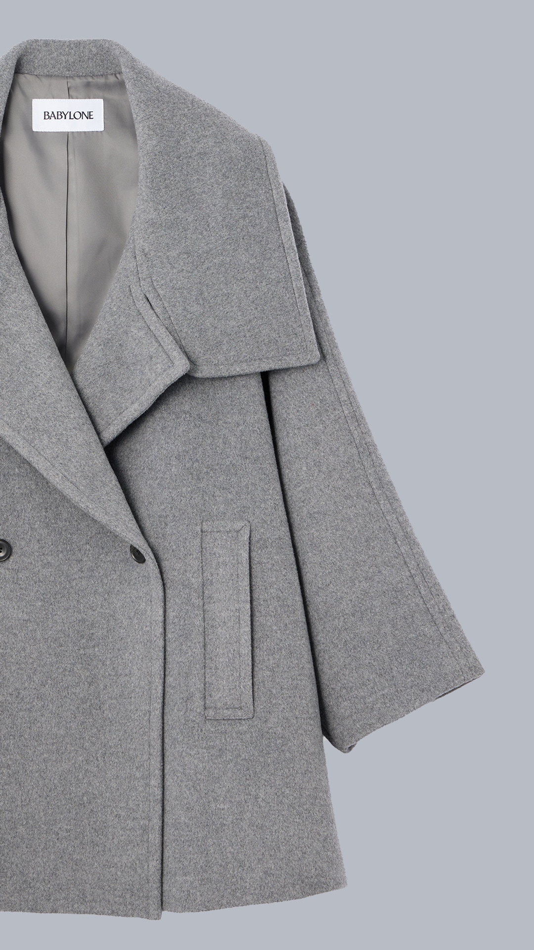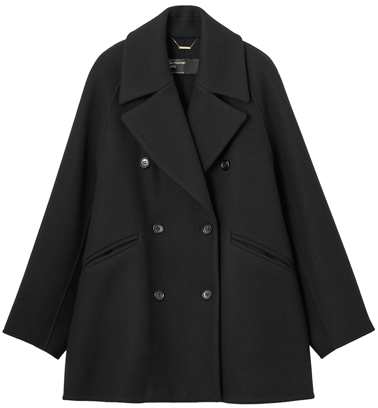 オーバーサイズのショートコート。ヒップまでしっかり隠れる安心丈でどのようなアイテムにも相性◎