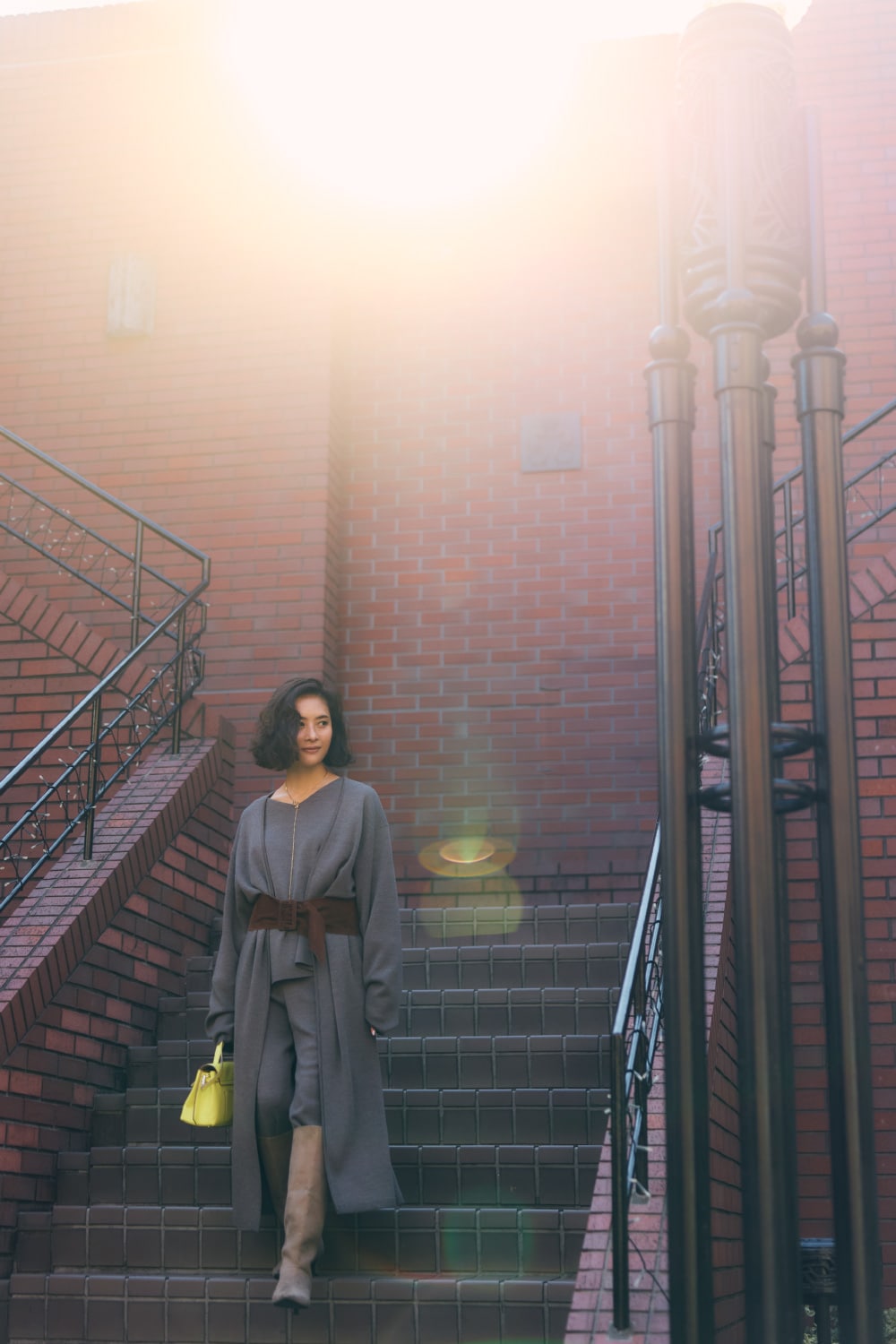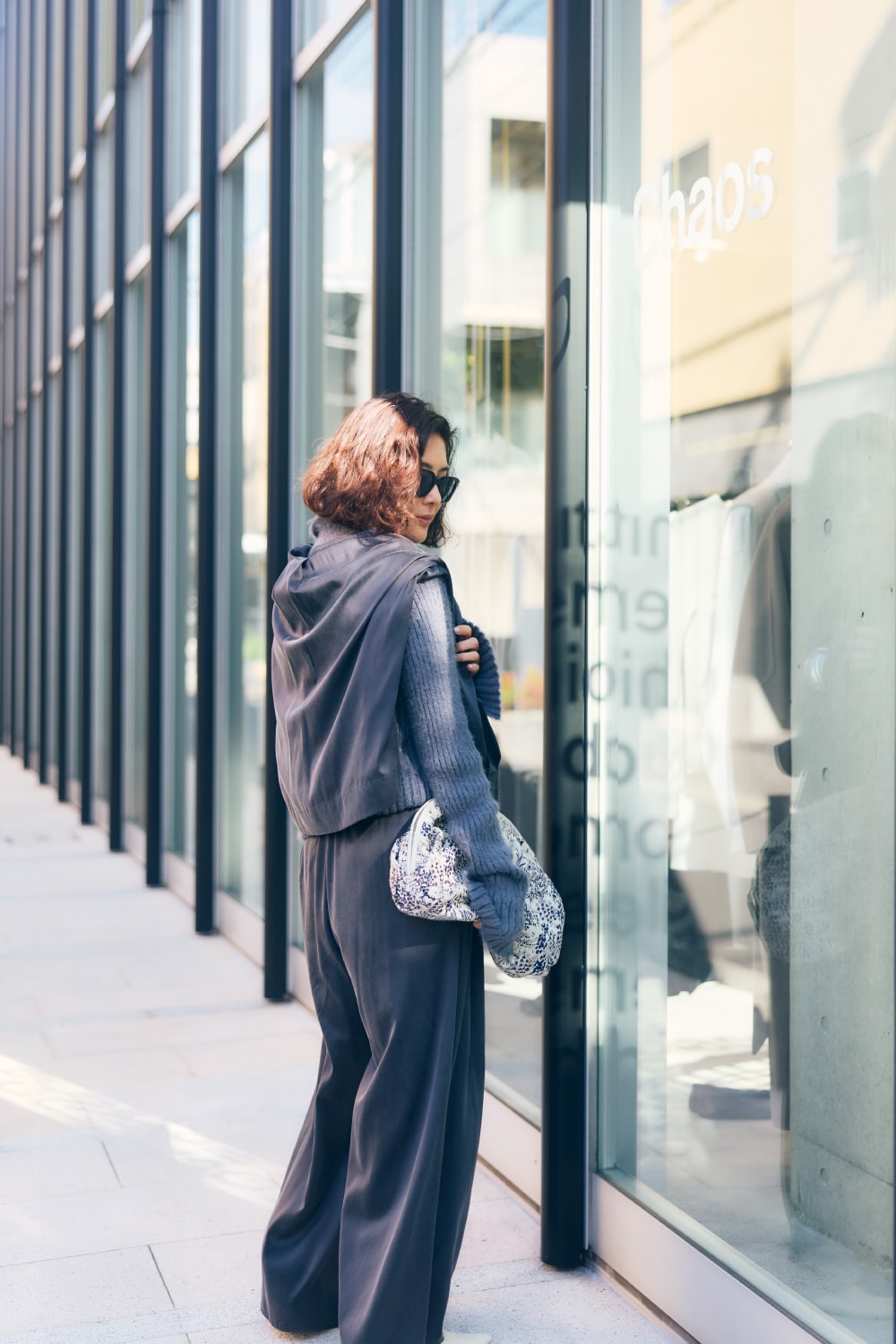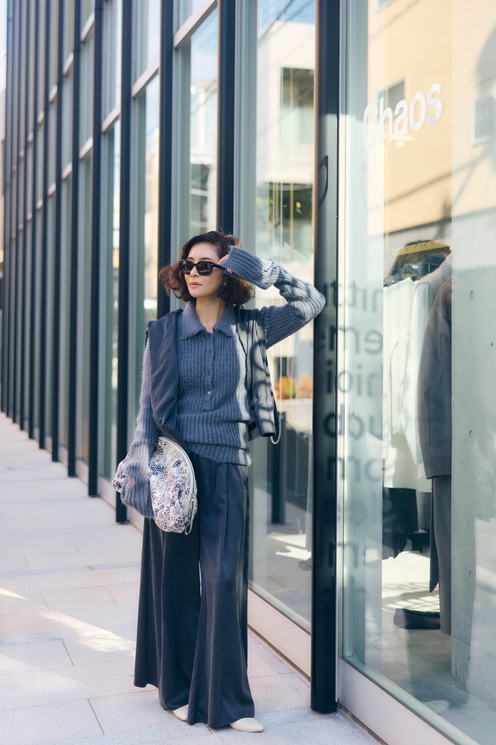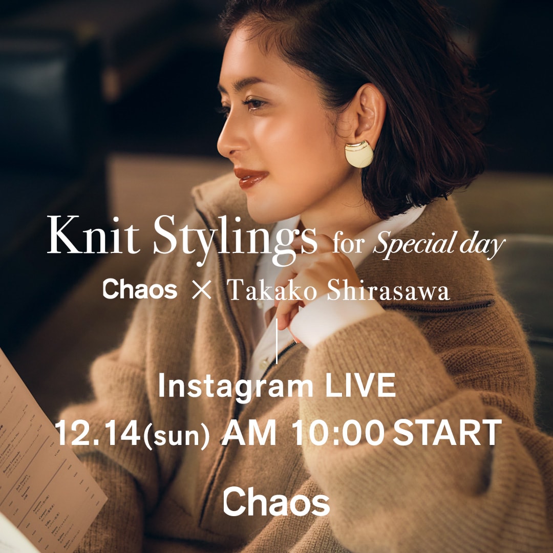 「私の周りにもファンの多いChaos定番のニットは、トップスとパンツのシリーズと共にセットで揃えておくとシーズンレスで使えてとっても便利。冬にはこうしてブーツイン、暖かくなったらサンダルを合わせて着回しています。」