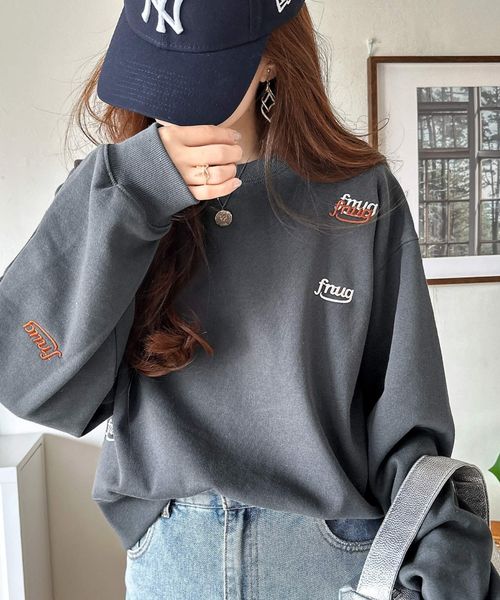 《Javaジャバコラボ》ランダム刺繍クロップド丈裏起毛スウェット jv1050234