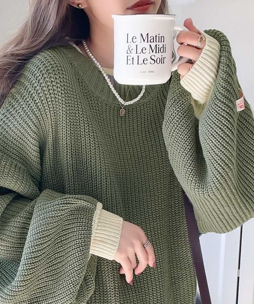 《JaVaジャバ コラボ》重ね着風ローゲージ オーバーサイズ ニット jv0780005