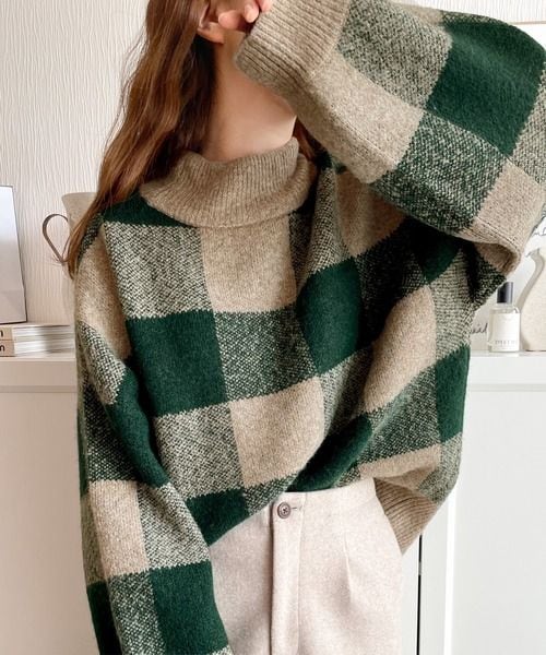 《JaVaジャバ コラボ》アルパカライクブロックチェックニットプルオーバー jv0420003