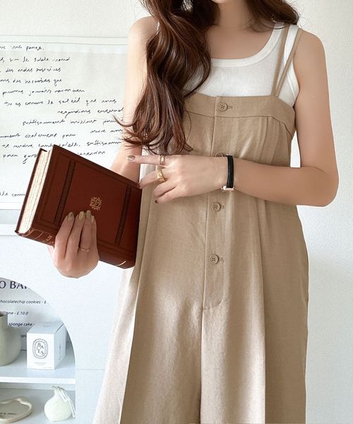 大人のこなれカジュアル。フロントボタン使いサロペットパンツce1260321