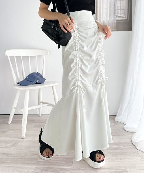 大人可愛い!愛され美ライン。シャーリングリボン使いマーメイドスカート(ロング丈)ce0940215