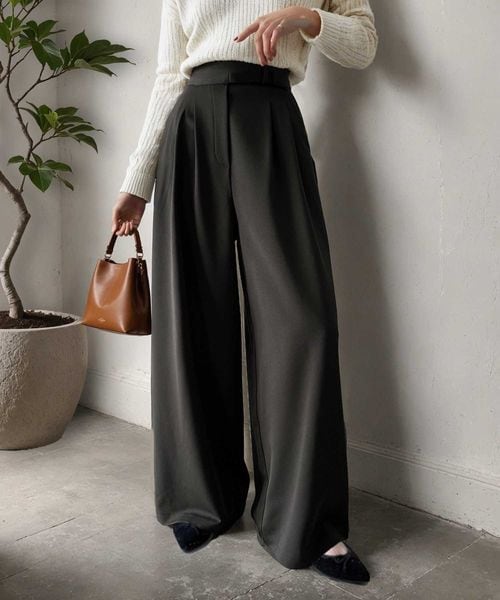 穿くだけで即キレイ見え。サイドベルトデザイン3タックストレッチスラックスパンツce1020228