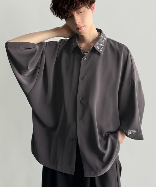 「雰囲気アガる。」衿刺繍ドレープドルマンシャツco1010004