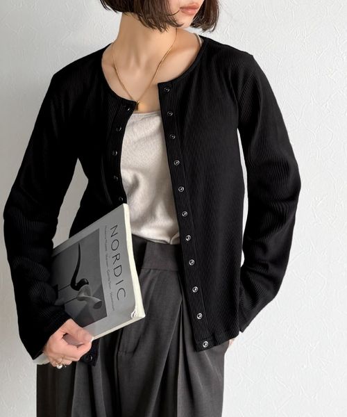 大人の余裕を纏う。前後2wayドットボタンリブ素材カーディガン(長袖)ce1260460