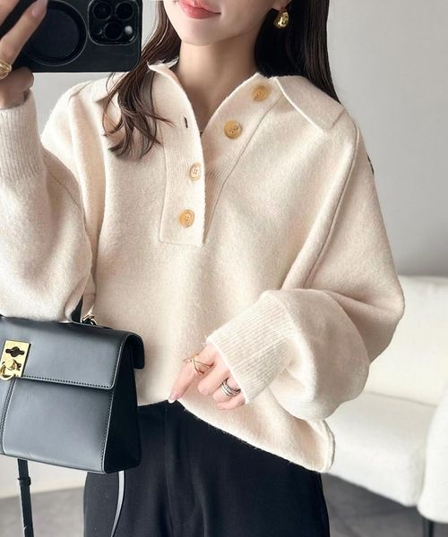 ふんわり&もっちりな肌ざわり。襟付きラグランスリーブニットプルオーバー(長袖)ce1020271