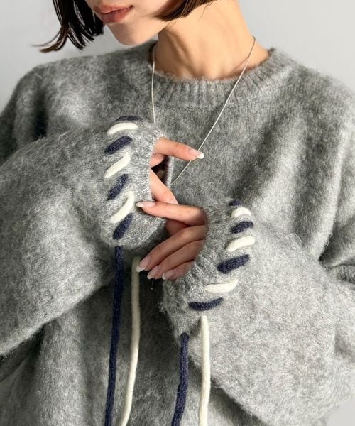 ふんわり温もり◎袖2wayリボン使い配色ニットプルオーバー(長袖)ce1380003