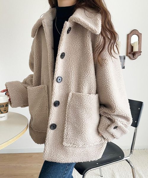 《JaVaジャバコラボ》纏う大人ボアが包み込む♪ボアショートブルゾンjv1265010