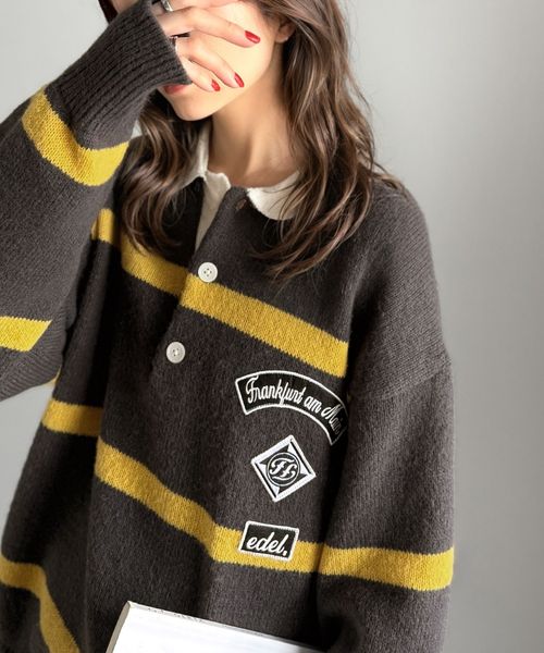 《JaVaコラボ》魅せる、トラッド感。ワッペンデザインラガーポロニット(長袖)jv1029131