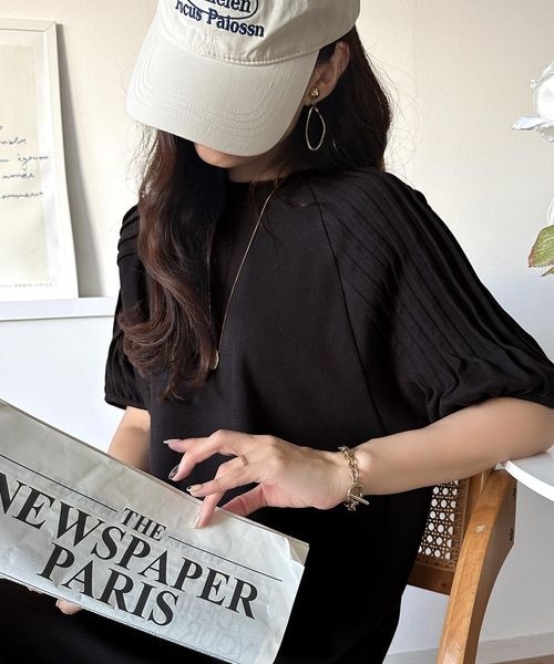 綿100% さらりと上品にきまる。袖タックラグラン半袖ワンピース(ロング丈)ce1300022