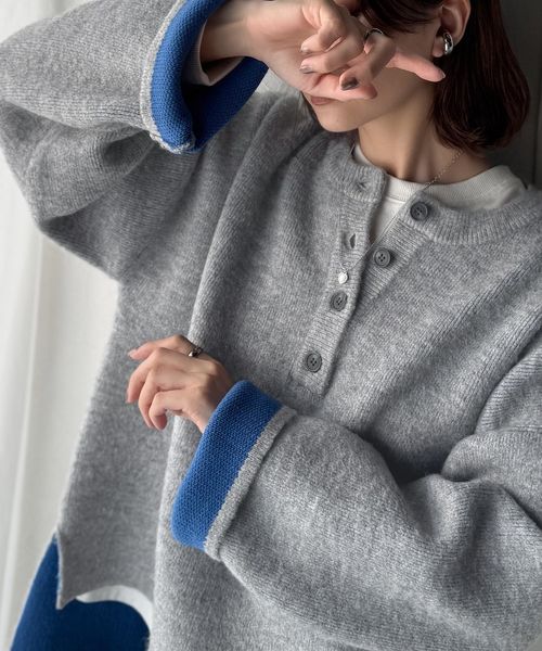 ダブルフェイス素材クルーネック配色ニットプルオーバー(長袖)ce1380004