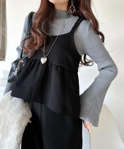 華奢見え華やかシルエット◎ダブルストラップペプラムサロペットce1265035