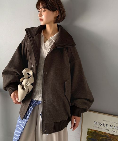 《JaVaジャバコラボ》襟リブニットメルトン比翼ブルゾン オーバーサイズjv1070178
