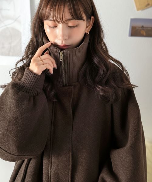 《JaVaジャバコラボ》襟リブニットメルトン比翼ブルゾン オーバーサイズjv1070178