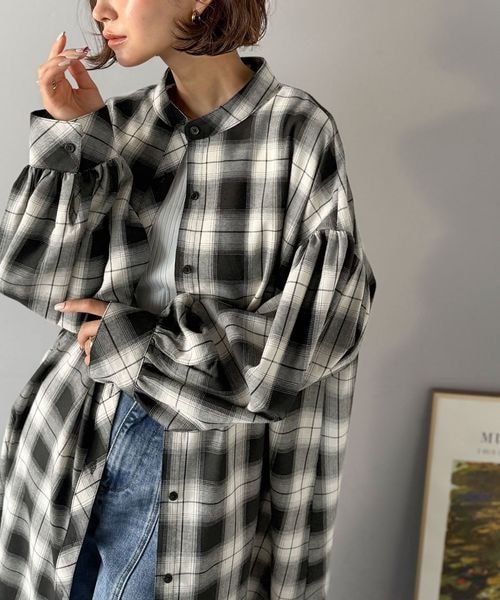 着方自在でロングシーズン活躍◎柄アソートバンドカラービッグシャツワンピce1010478