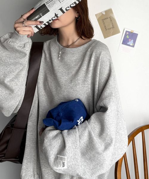 《JaVaジャバコラボ》オンナっぽカジュアル!裏起毛ワイドネックビックスウェットjv1050329