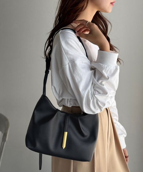 シンプルキレイめで高見えを叶える◎メタルパーツソフトシュリンクレザーバッグce1029165
