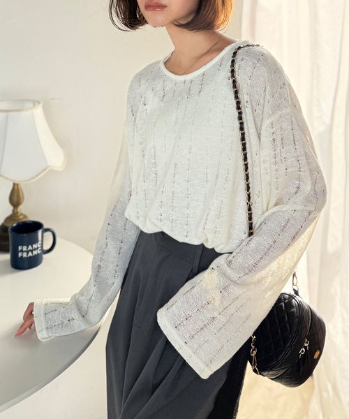 さりげない透け感で魅せる、透かし編みトップス(長袖)ce1010504