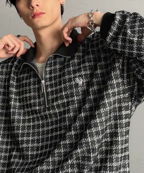 【Classical Origin】ツイード素材ハーフジッププルオーバーco1010032
