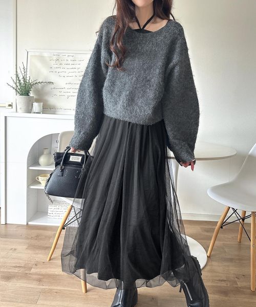 褒められワンピ♪マルチwayニット×チュールワンピースセット(セットアイテム)ce1260524