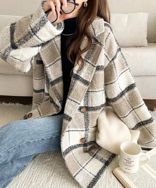 【mily bilet】チェック柄コクーンシルエットダブルジャケットコートmi1019109