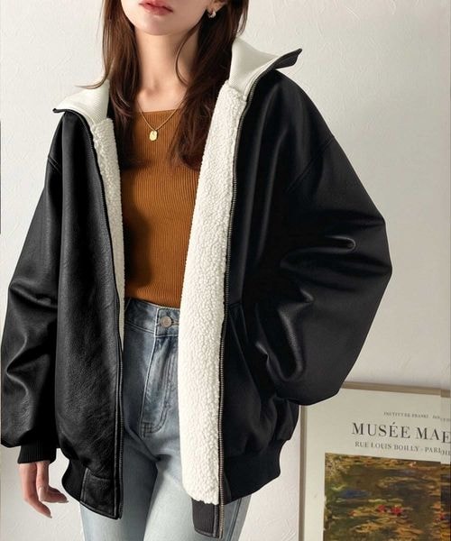 【Java】2wayフェイクレザー×ボアリバーシブルブルゾンjv1010525
