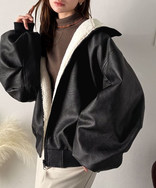 【Java】2wayフェイクレザー×ボアリバーシブルブルゾンjv1010525