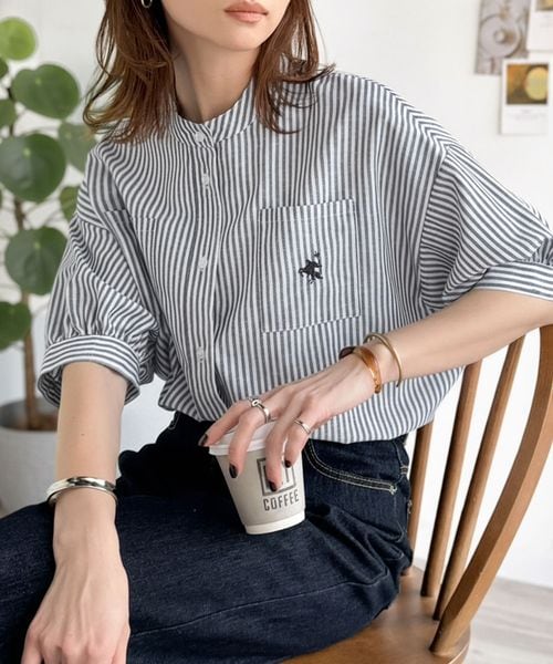 涼やかリネンで、こなれたきちんと感。リネン混バンドカラーダブルポケットシャツce1265070