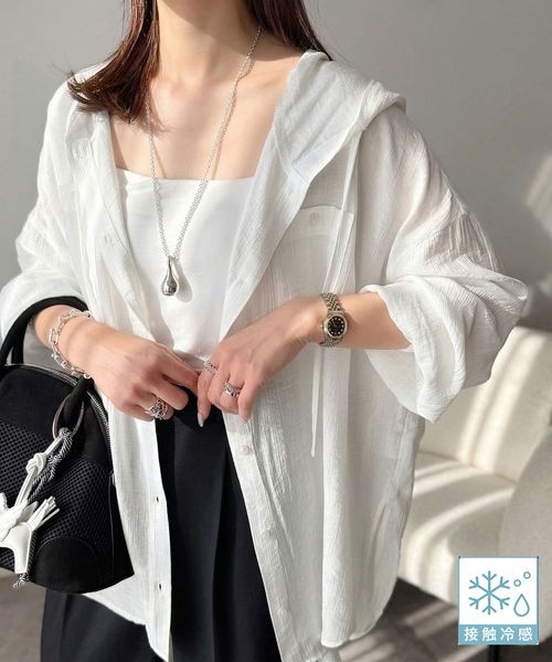 【接触冷感機能付き】風をまとって、軽やかに。ダブルポケット付きフードシアーシャツce1265045