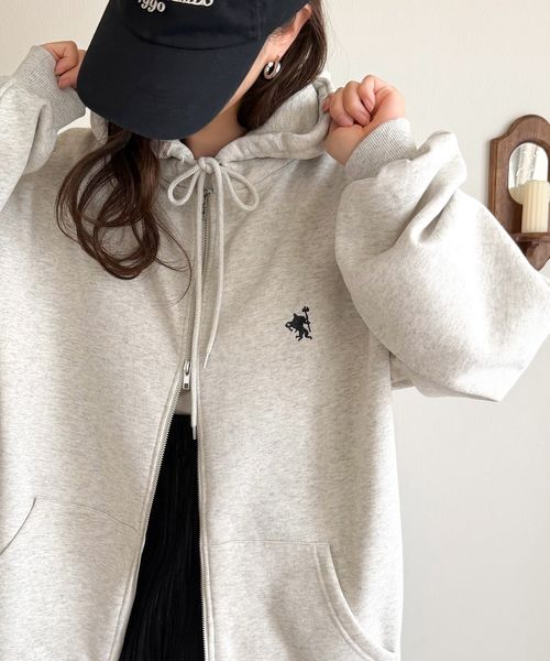 羽織って暖か、さらりと洒落感。胸元ワンポイント刺繍裏起毛ダブルジップパーカーce1260601