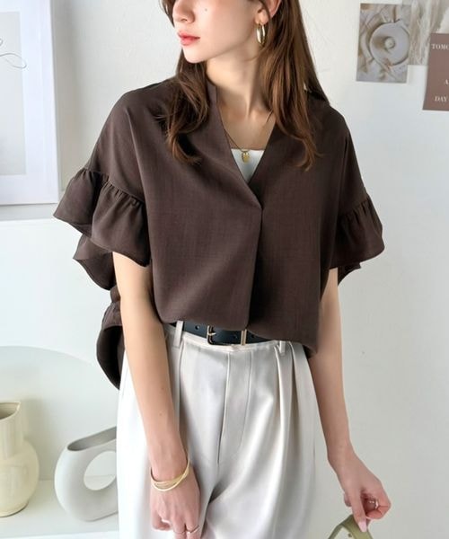 フリルが添える、さりげない甘さ♪Vネックスキッパーフリルブラウス ce1110181