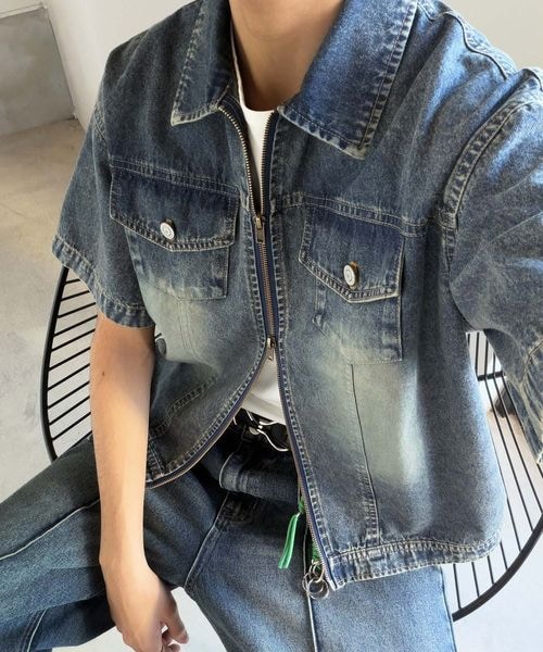 ヴィンテージ加工ショート丈ダブルジップデニムシャツjo1010040