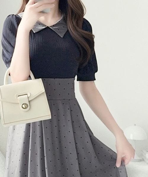 【mily bilet】ドット柄配色切り替えドッキングワンピース(ロング丈)mi1139108