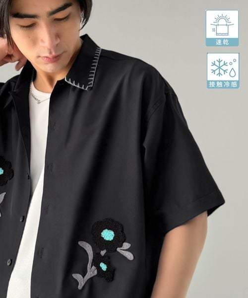 【接触冷感】サガラ刺繍フラワーステッチシャツco1320019