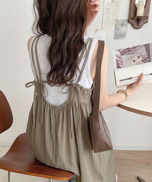 大人可愛いを格上げ。綿100% バックリボンティアードキャミワンピースce1010578