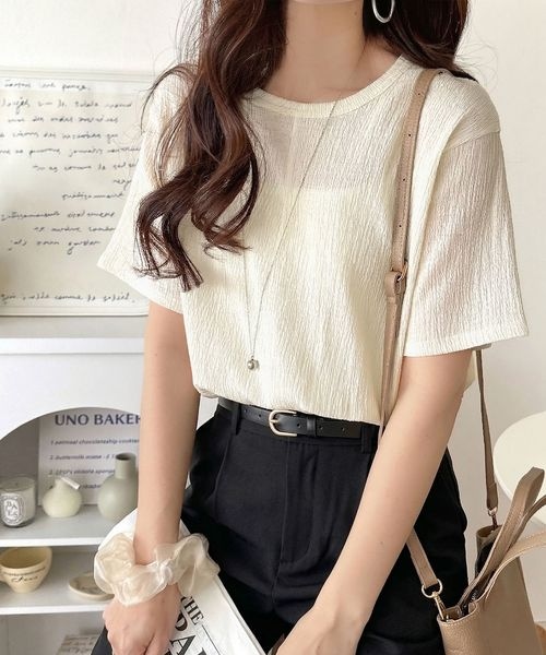 軽やか涼感、さらり抜け感。楊柳ベーシックTシャツ(半袖)ce1260529