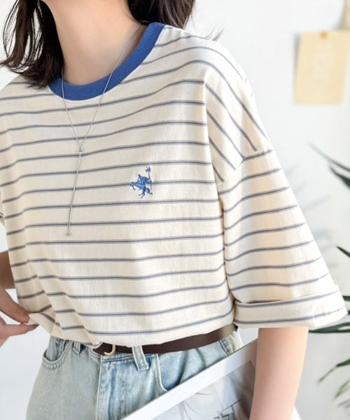 《JaVaジャバコラボ》 胸刺繍マルチボーダーアソートTシャツjv1330097