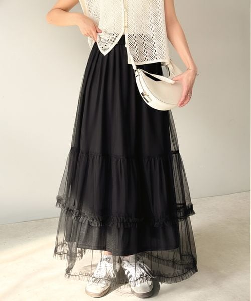 甘すぎない。シンプル合わせでも映える。フリルティアードチュールスカートce1015104